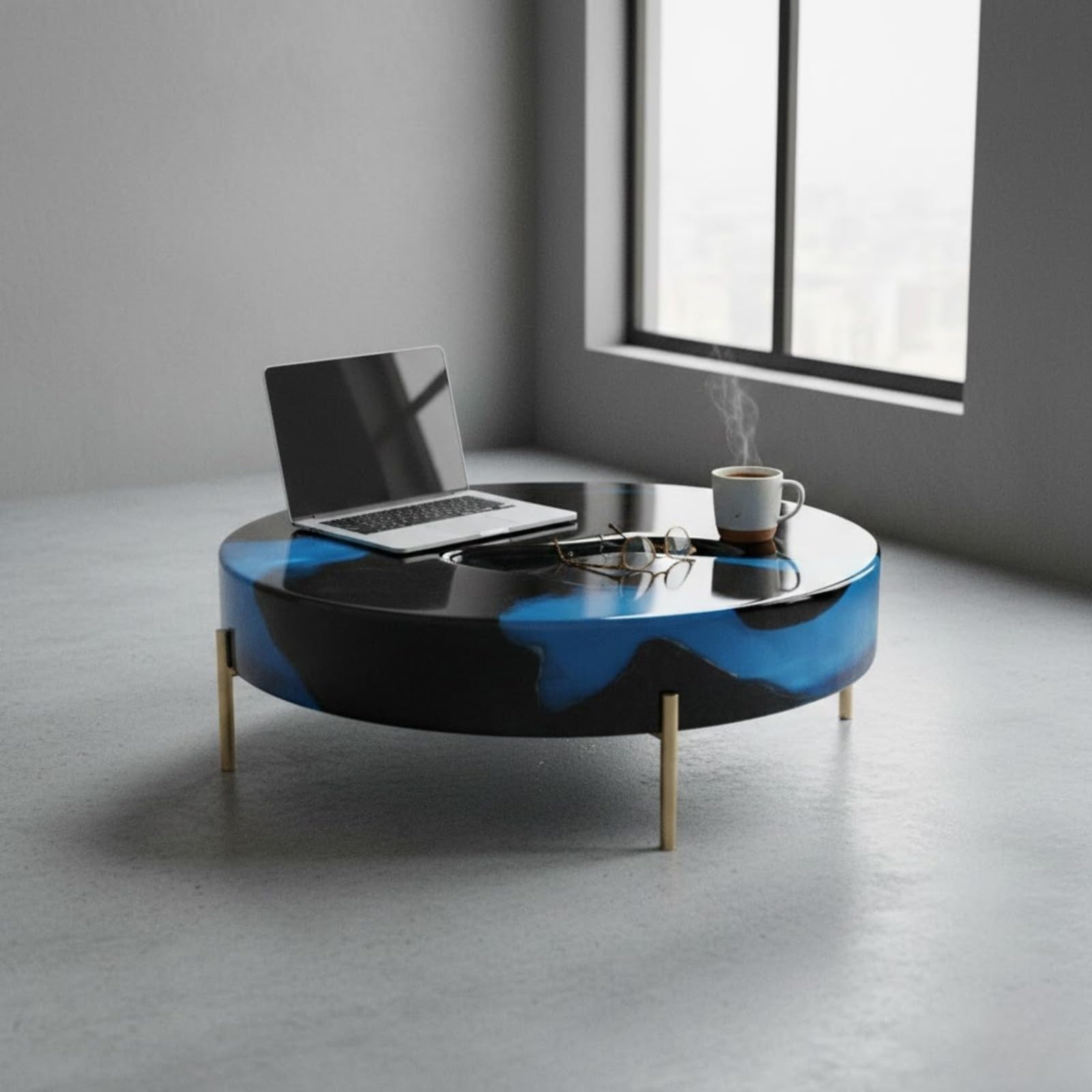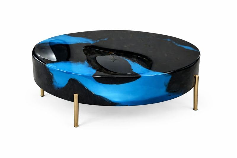 Black & Blue Epoxy Resin Center Table | Round Luxury Coffee Table with Gold Metal Legs for Modern Living Room Mumbai [48 inch Diameter ]
