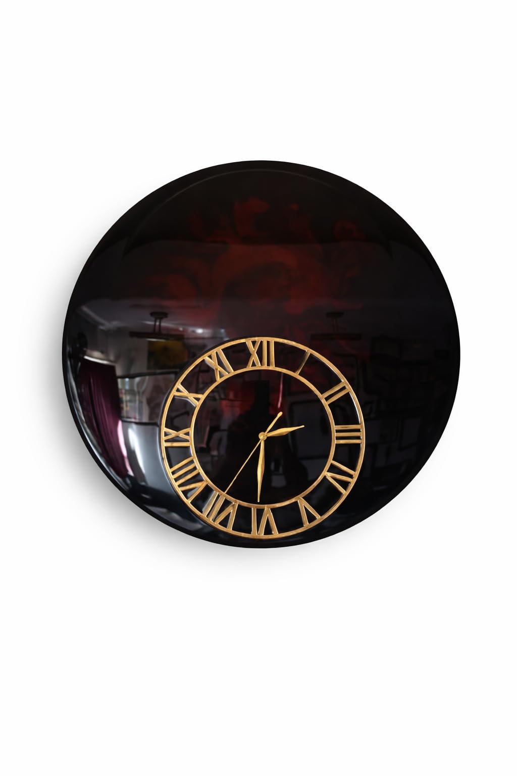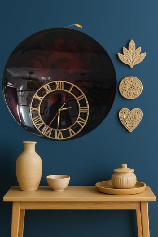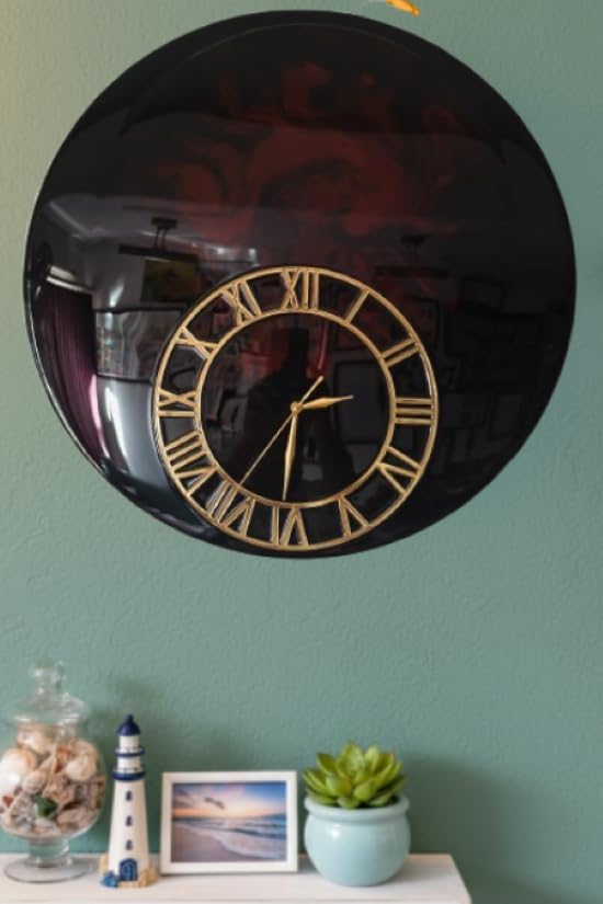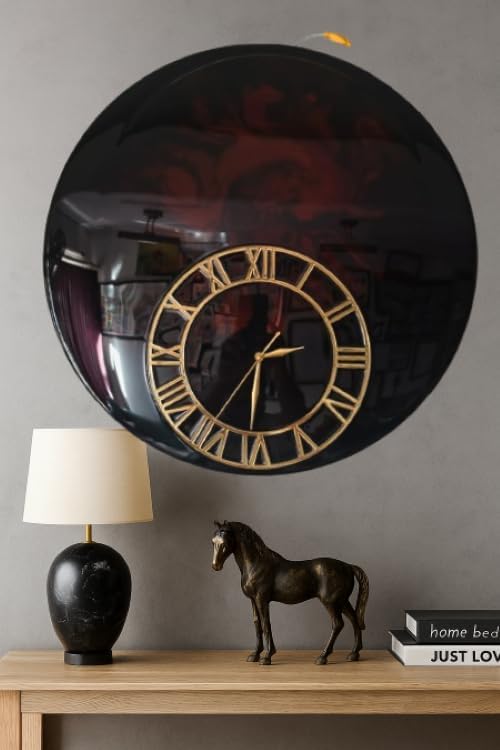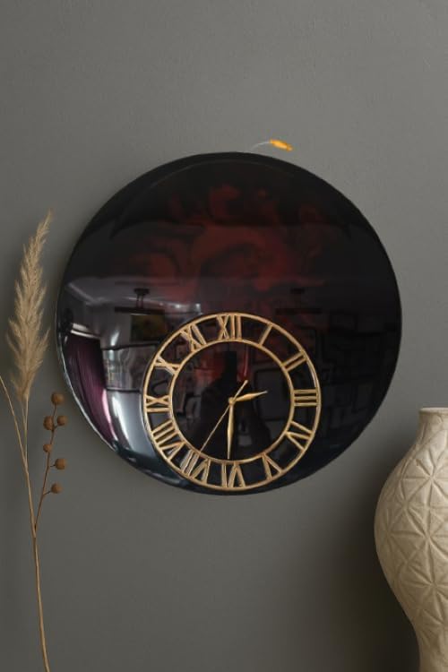 Buy Black Resin Wall Clock with Golden Roman Numerals Premium Base Luxury Glossy Finish Home Décor Clock Modern Decorative Wall Clock for Living Room, Bedroom & Office