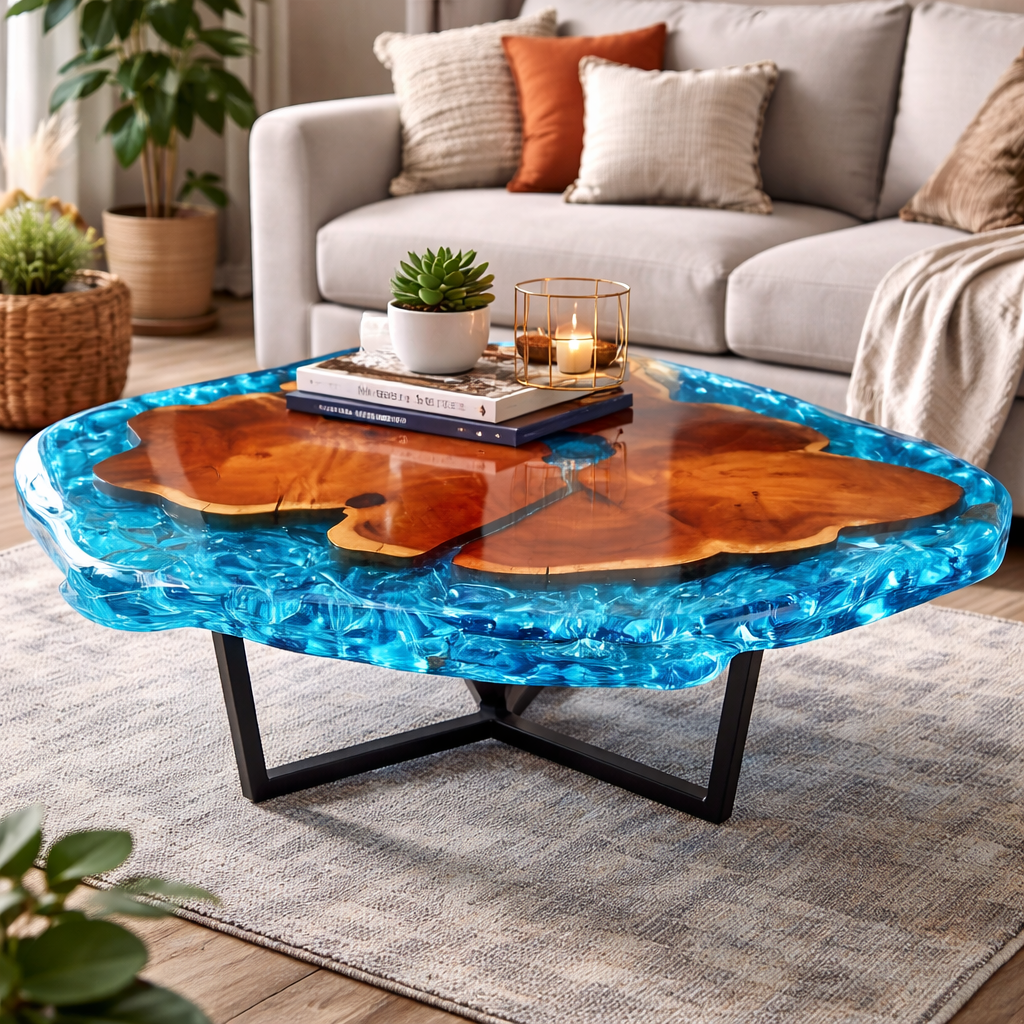 Perfect for those looking to buy a luxury resin center table online in India, this piece offers both durability and artistic elegance. The smooth polished surface and modern metal base ensure long-lasting strength while enhancing contemporary interiors.