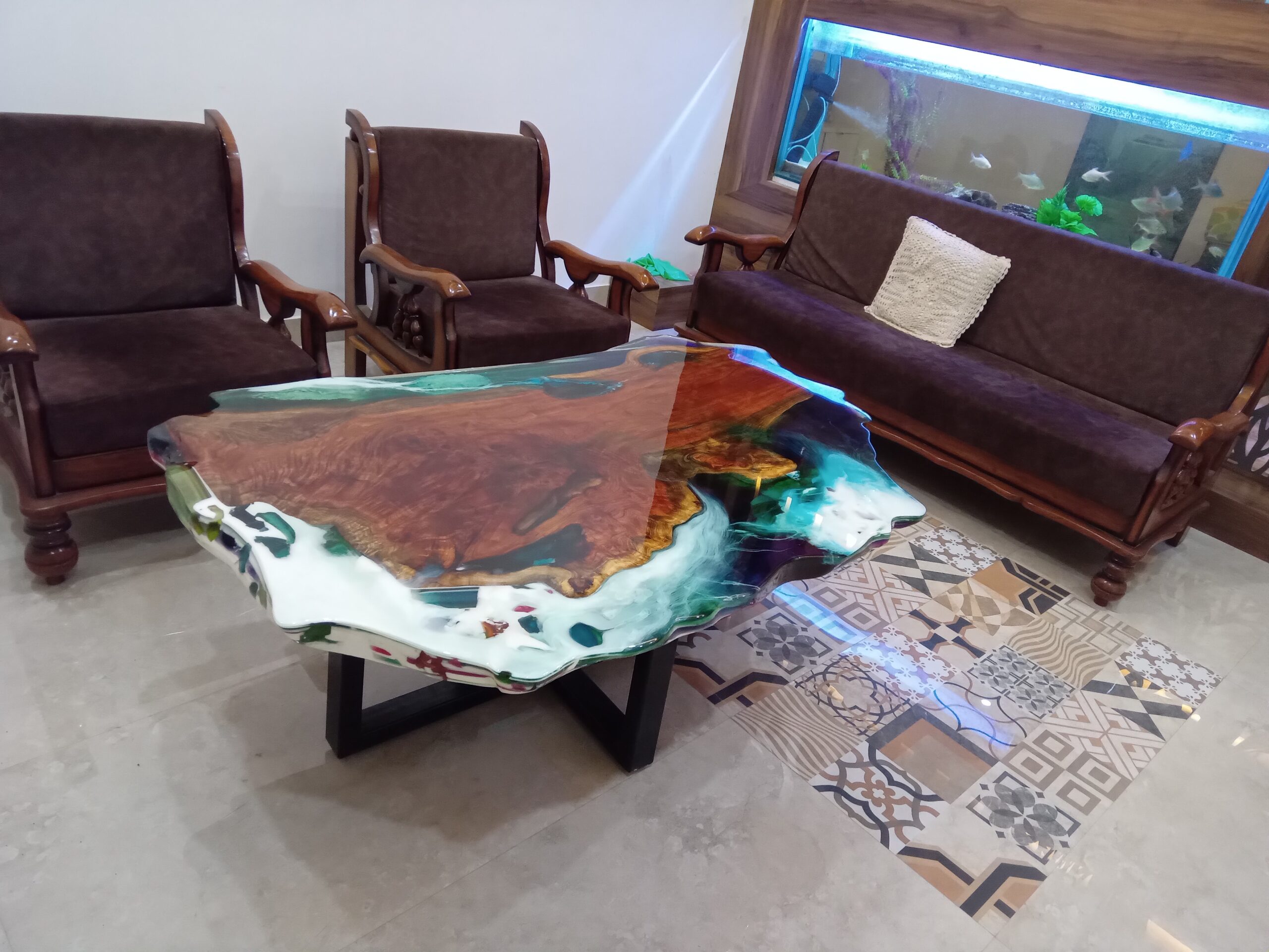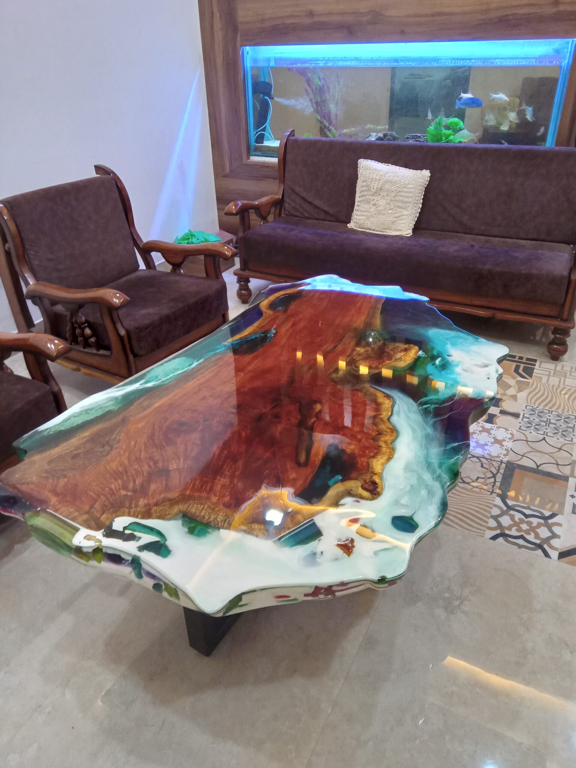 Order your unique custom ocean epoxy wooden center table online today — best price guaranteed, delivered safely to your home anywhere in India.