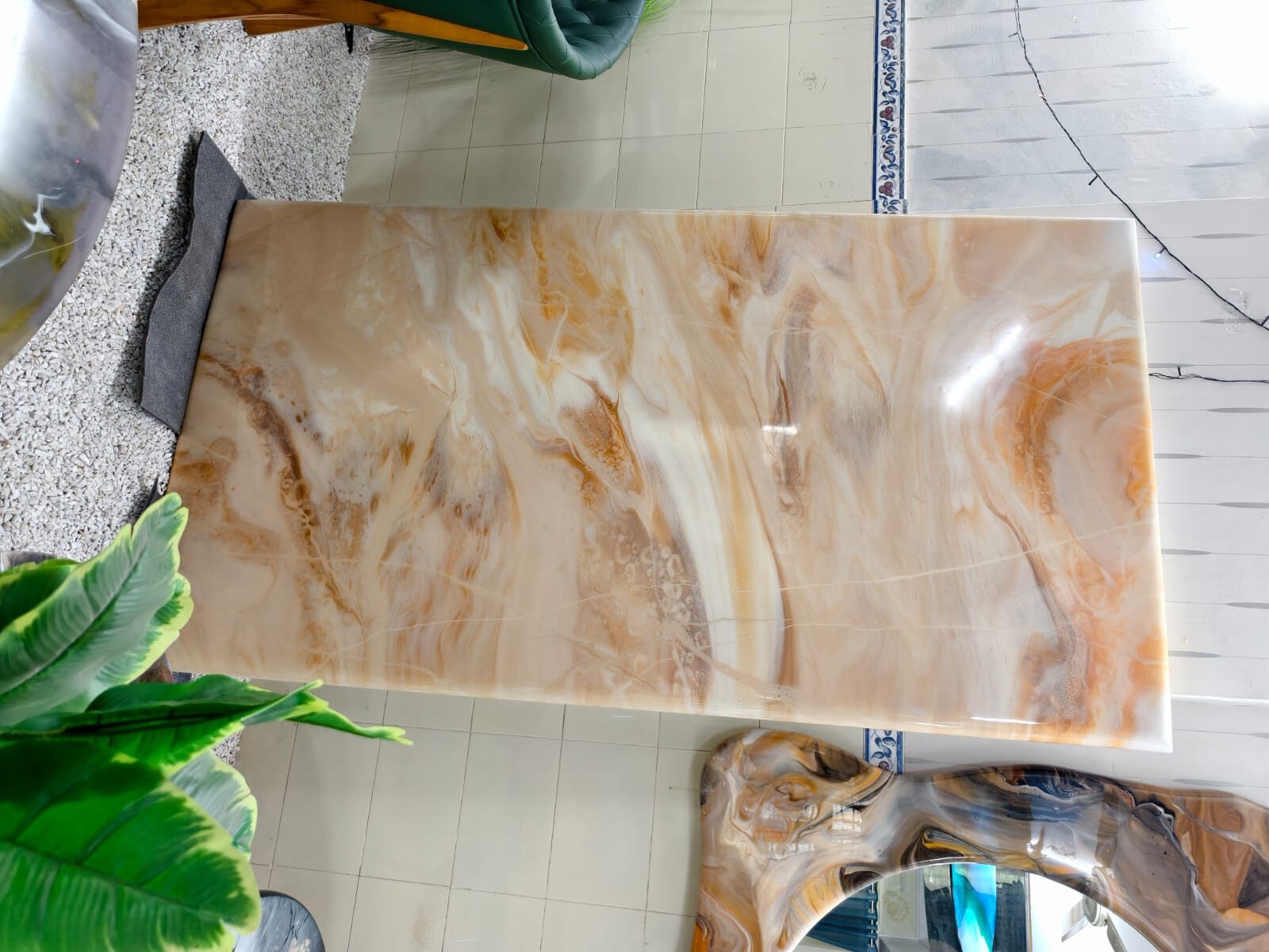 Each table is carefully crafted using high-quality epoxy resin, ensuring a smooth glossy surface, long-lasting strength, and a truly unique designer look. Whether you want a large modern dining table for your family or a statement piece for your interiors, this table delivers both functionality and style.