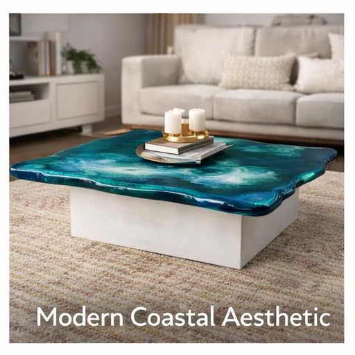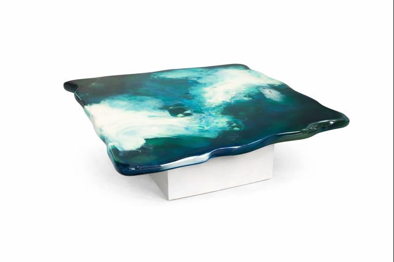 Every table is individually poured, layer by layer, using premium UV-stabilised epoxy resin loaded with turquoise, cobalt, and white pigments. No two pieces are ever identical. The organic wavy edges — sculpted to mimic foam breaking on a shore — give this modern abstract art coffee table an unmistakably sculptural quality that sits equally at home in contemporary, coastal, or eclectic interiors.