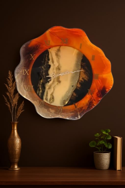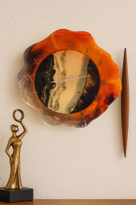Each clock is handmade using premium UV-resistant epoxy resin on a durable wooden base, ensuring a high-gloss, glass-like finish that won’t fade. The subtle Roman numerals and minimalist silver hands offer a touch of classic elegance to the abstract design. Whether you’re looking to shop for a large statement piece for your foyer or order online a sophisticated corporate gift, this custom-feel clock is the perfect choice. Experience the best price for authentic Indian craftsmanship and transform your wall into a focal point of luxury today.