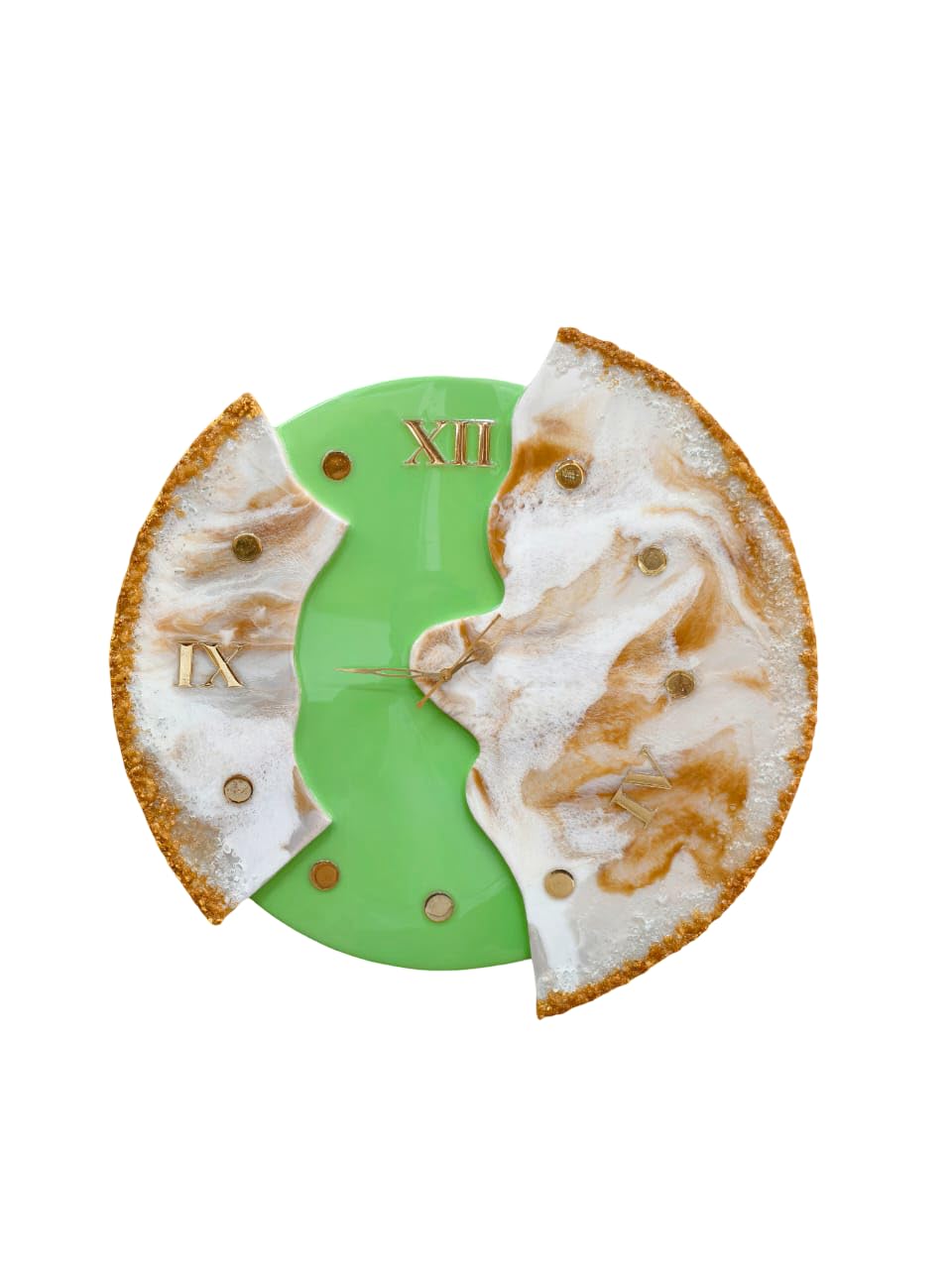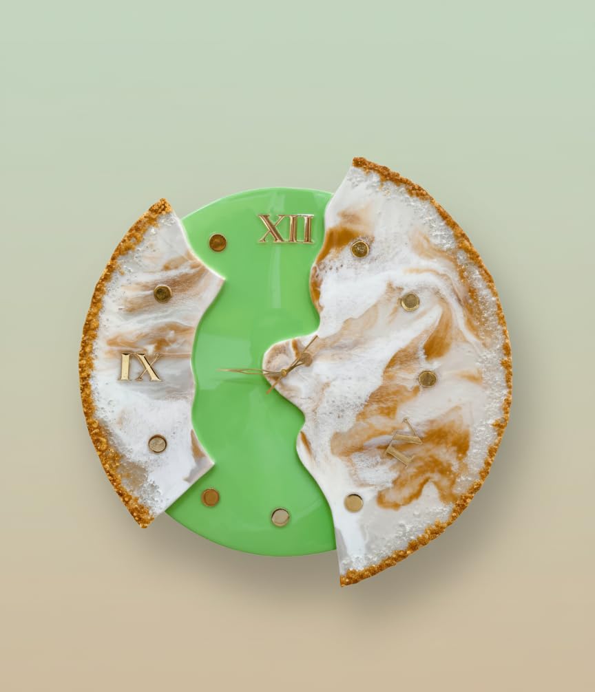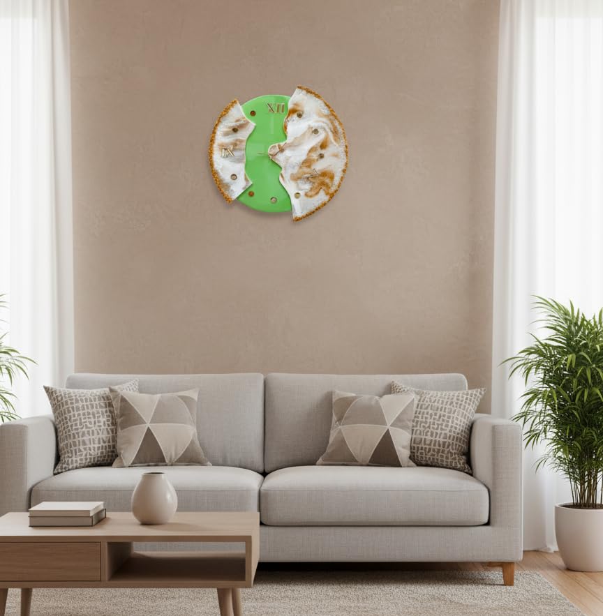 Step away from ordinary timepieces and embrace art. This stunning handmade wooden wall clock is not just a tool to tell time; it is a centerpiece for your home. Featuring a luxurious green and white marble effect created with high-quality resin, the design flows beautifully against the natural warmth of solid wood.